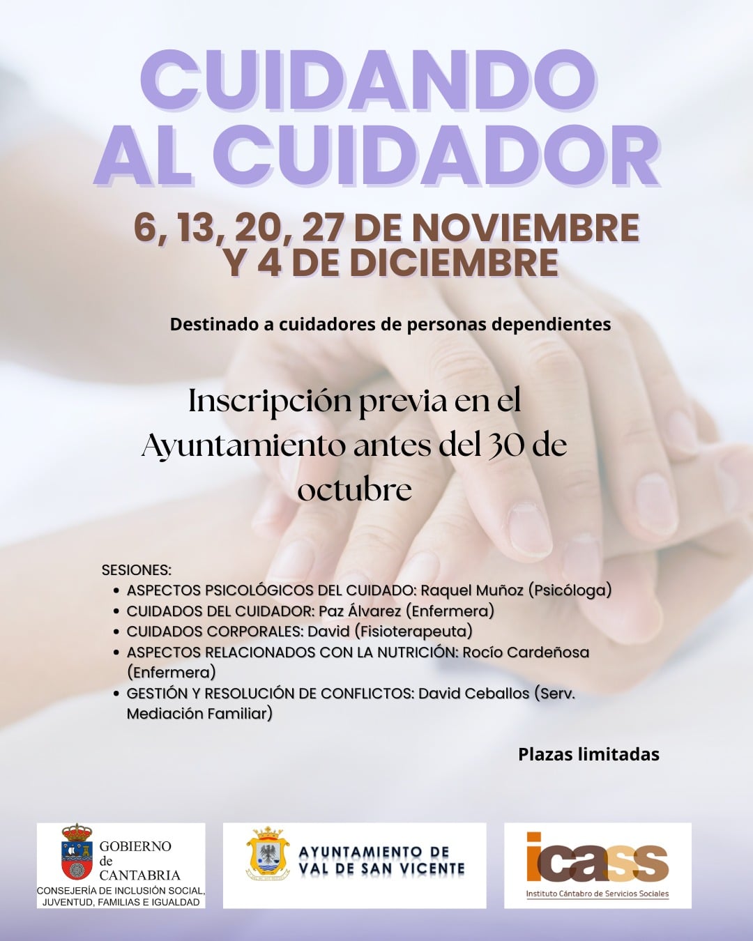 Cuidar de alguien requiere tiempo, energía y mucha dedicación. Por eso el Ayuntamiento de Val de San Vicente impulsa un programa gratuito dirigido a personas cuidadoras de personas en situación de dependencia, con el objetivo de acompañarlas y reforzar su bienestar físico y emocional.